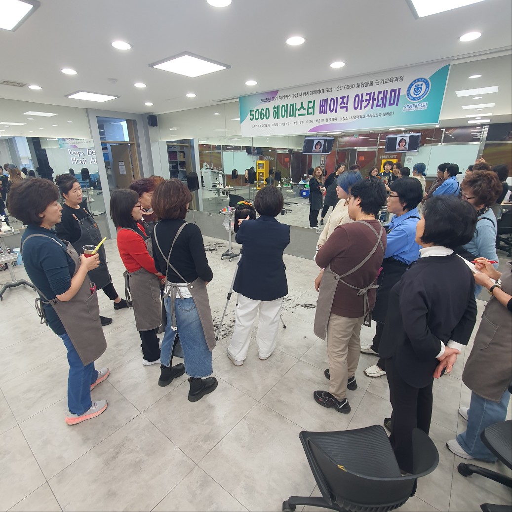 2025년 경기도 RISE 「2C 5060 통합돌봄 단기교육과정」 특강 운영 서영대학교 뷰티아트과는 2025년 경기도 지역혁신중심 대학지원체계(RISE) 사업의 일환으로 「2C 5060 통합돌봄 단기교육과정」 특강을 운영했습니다. 이번 특강은 50·60세대 성인학습자를 대상으로 통합돌봄과 뷰티케어를 융합한 실무 중심 교육을 통해, 지역사회 내 돌봄 인력의 역량 강화와 일자리 창출을 목표로 진행되었습니다. 참여자들은 헤어 및 뷰티케어 실습, 소통과 돌봄의 기술, 건강·복지 연계 교육 등을 통해 실질적인 전문성을 높이는 뜻깊은 시간을 가졌습니다.