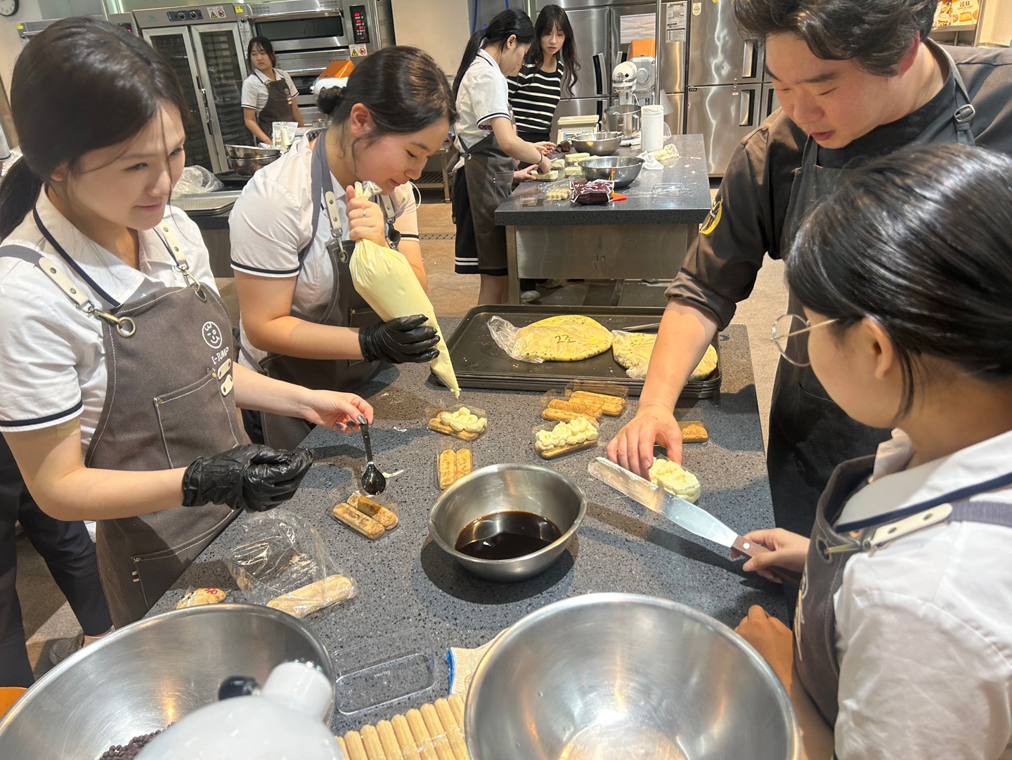 '카페 브런치 메뉴 체험'으로, 학생들과 직접 쿠키와 티라미수를 만들어보는 체험 활동을 진행하였다. 체험을 통해 학생들이 제과제빵 분야의 많은 관심을 갖고 직접 경험 해보는 기회를 가졌다.