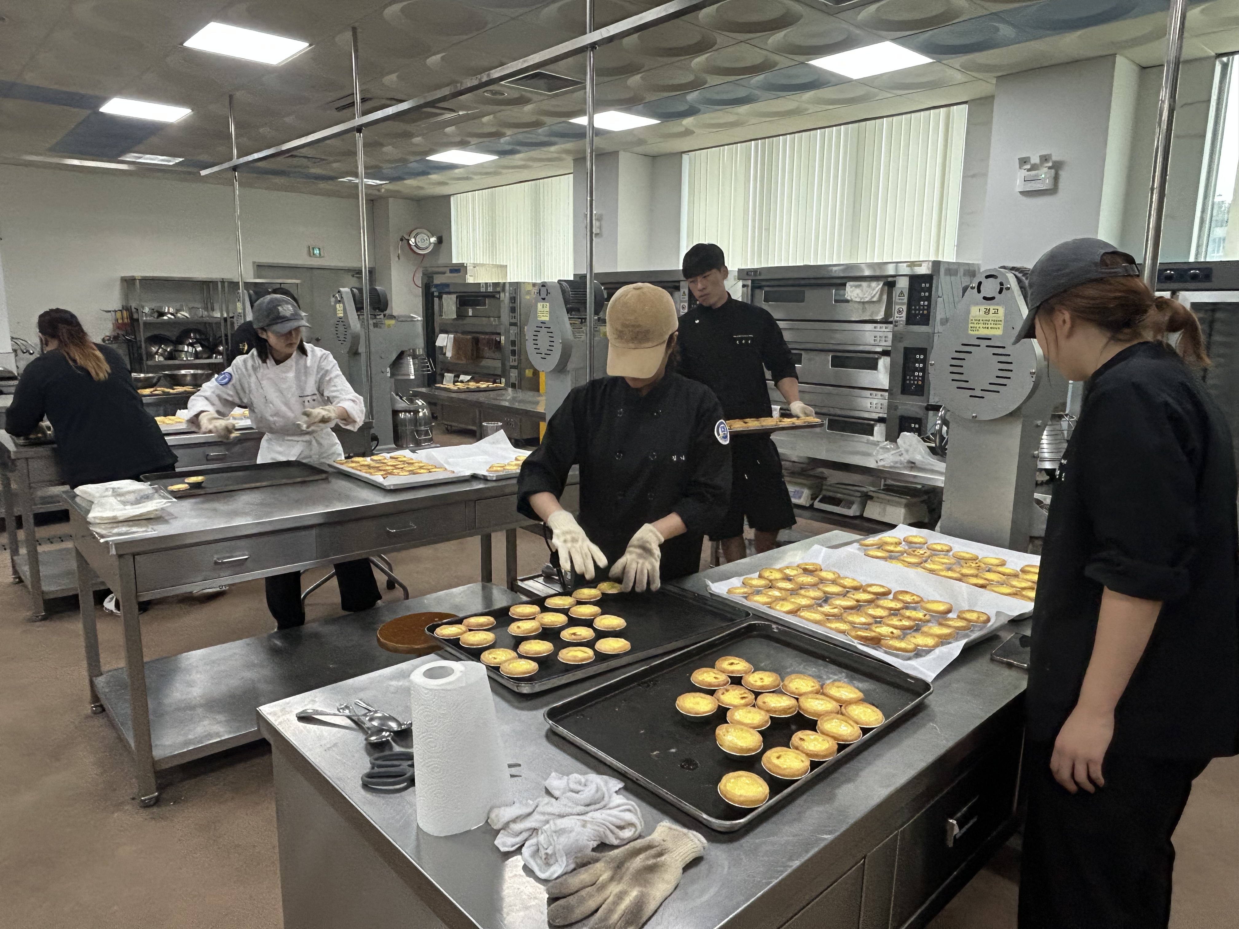 이번 봉사에는 호텔조리제빵과 재학생들이 참여해 수업을 통해 익힌 전문 기술을 활용, 직접 만든 에그타르트와 시원한 음료로 구성된 다과 세트를 준비해 지역 주민들에게 제공했다.