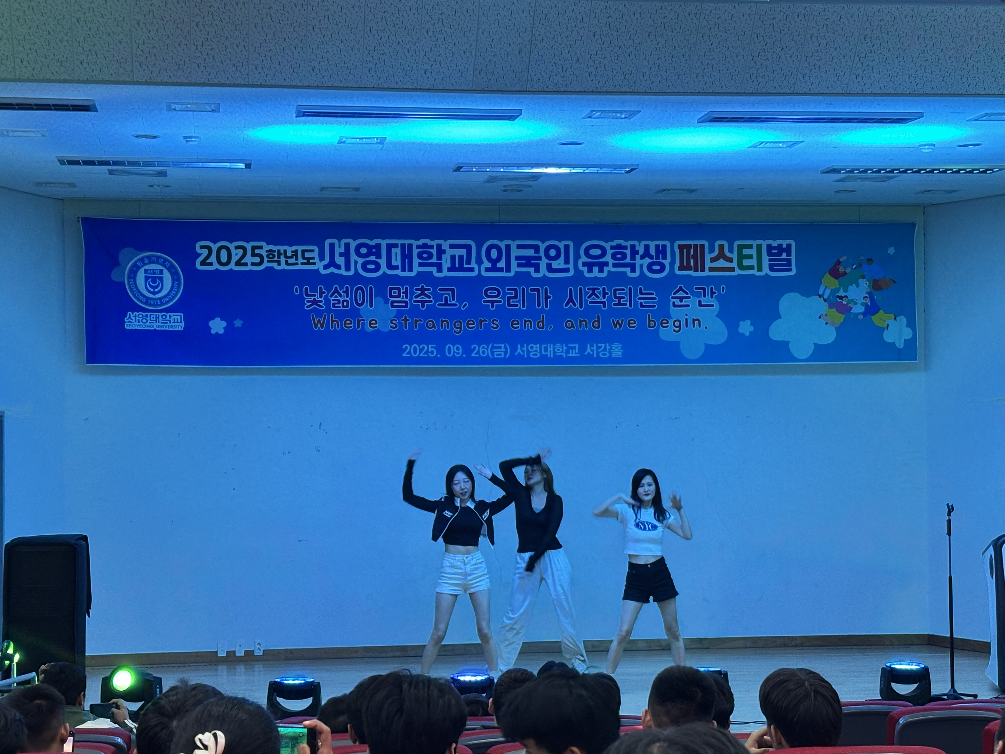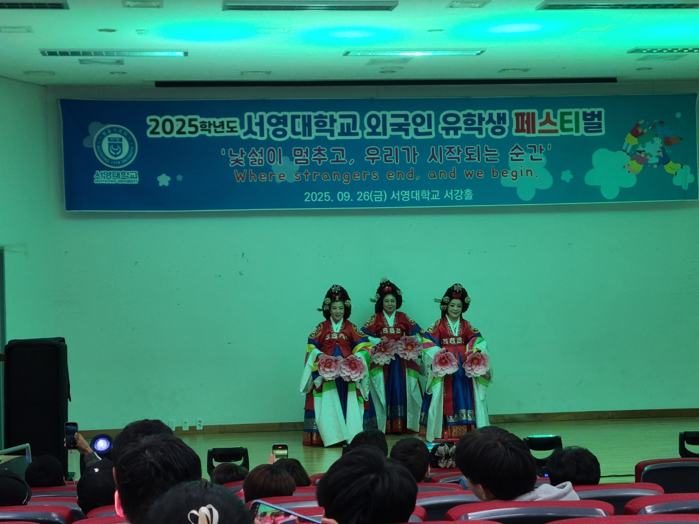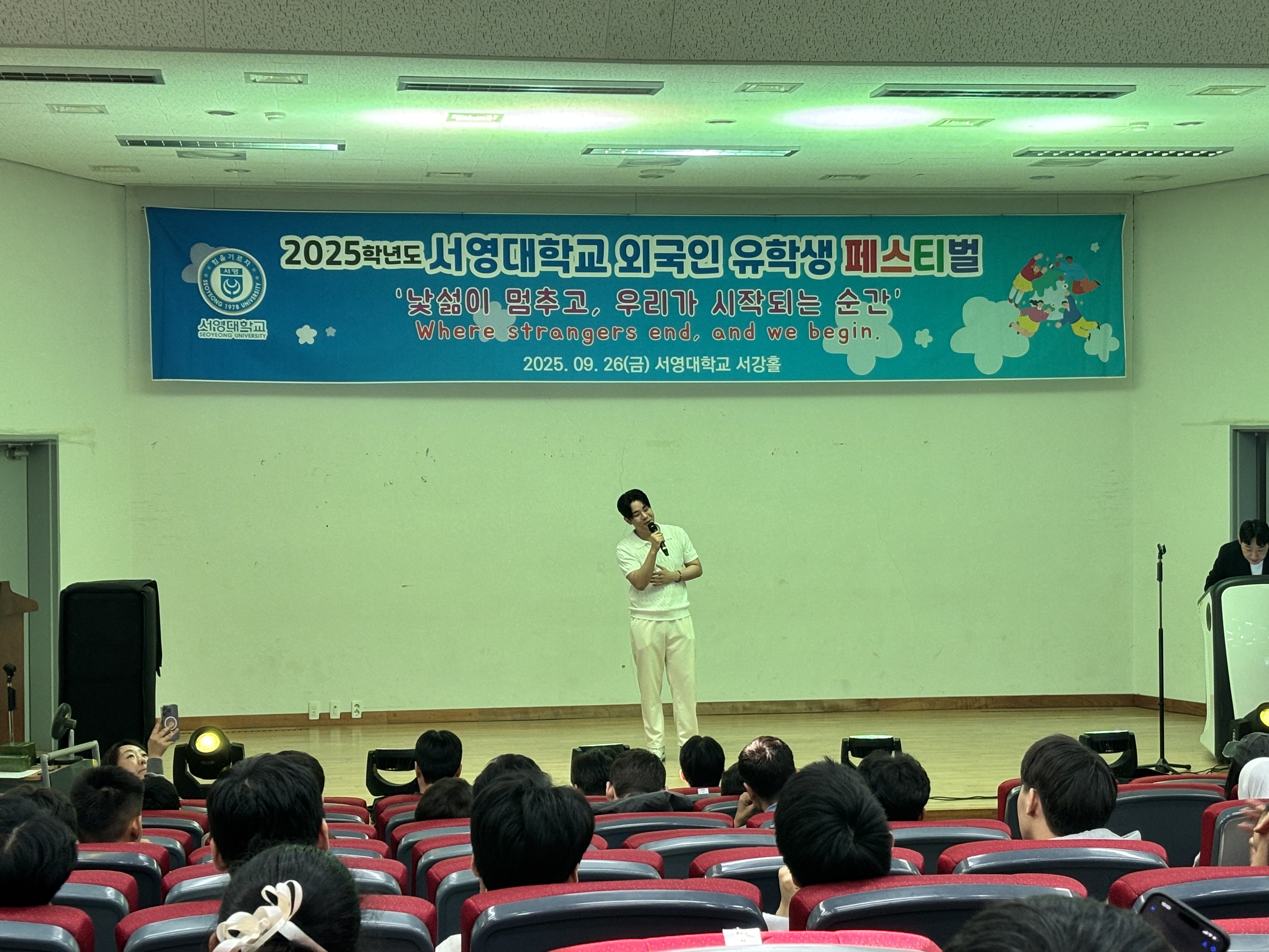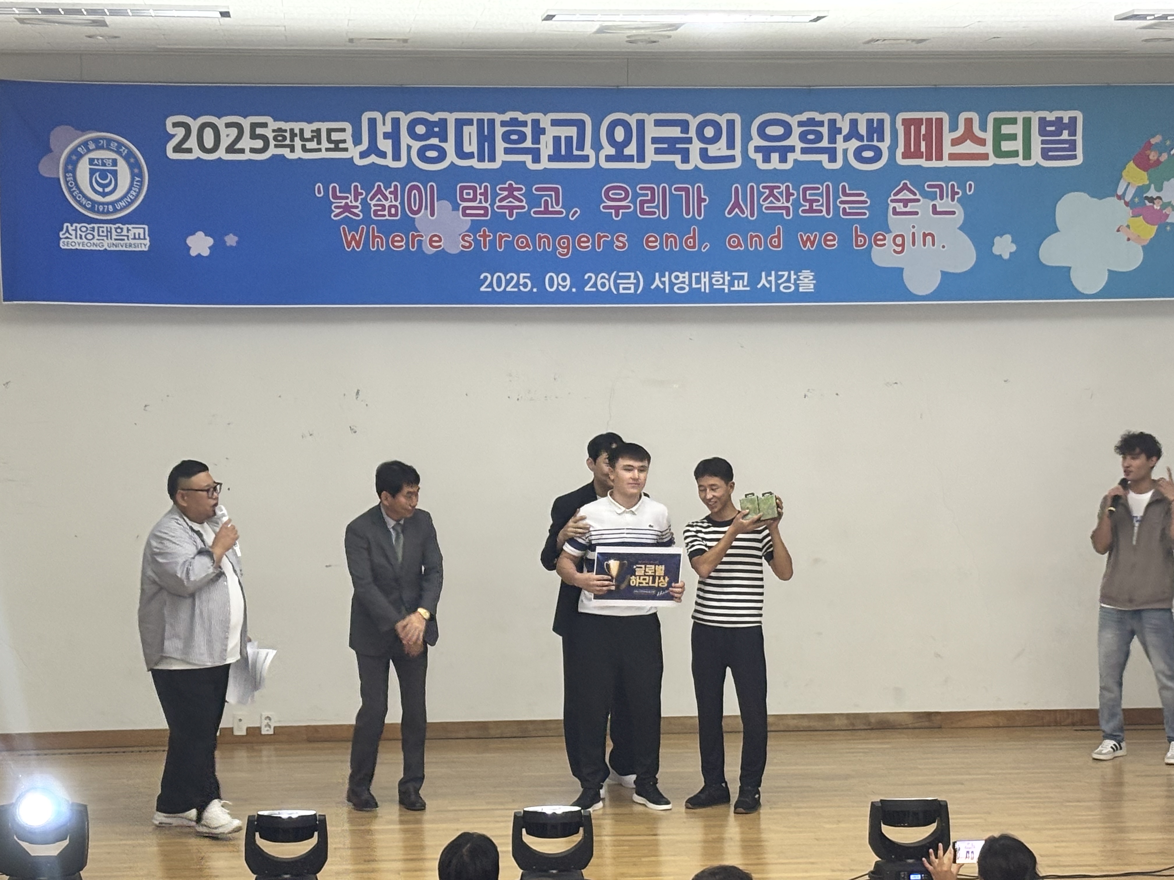 우리 서영대학교에서는 외국인 유학생들이 한국 문화를 보다 쉽게 이해하고, 적응하며 즐겁게 학업에 전념할 수 있도록 다양한 교류의 장을 마련하고 있습니다. 2025년 9월 26일 진행된 외국인 유학생 페스티벌에서 우리 미래자동차과의 우즈베키스탄과 베트남 유학생들이 장기자랑 무대에 참가하여 수상하는 기쁨을 나누었습니다. 행사에 참여한 학생들은 한국의 다양한 축하공연을 함께 보며 즐거운 시간을 보냈습니다. 앞으로도 유학생들이 학업과 학교생활에 원활히 적응하고, 서로 존중하며 함께 성장할 수 있도록 적극적으로 지원하겠습니다.